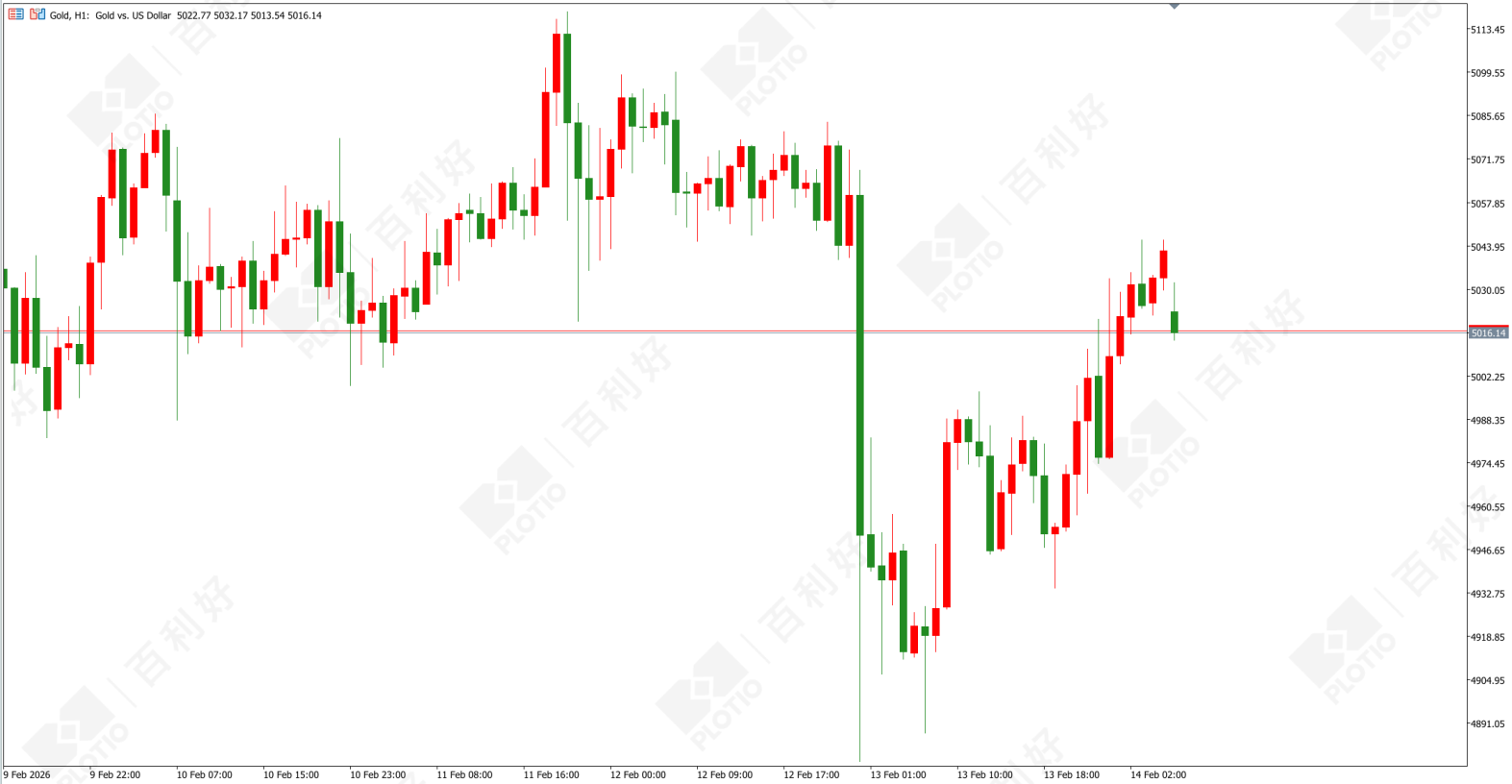 黄金价格走势图:黄金小时图