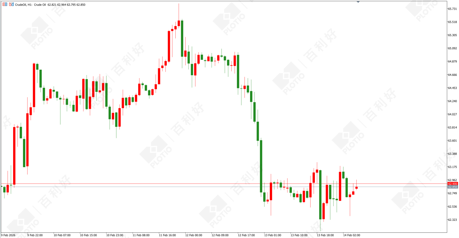 原油价格走势图:原油小时图