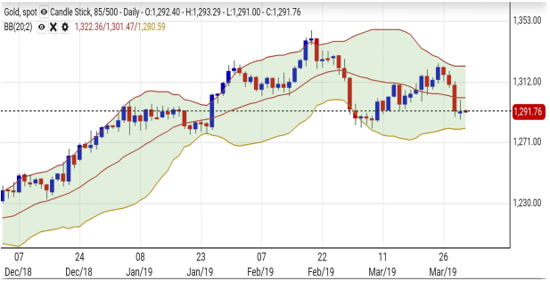 上周五美国股市反弹金价受压,因美国国债息率倒挂情况扭转,市场对美国经济衰退预期有所舒缓,避险资金流出金市,金价受制于1300美元大关阻力。此外,周五公布的美国核心通胀数据略差于市场预期,同比上升只有1.8%,反映美联储仍有进一步减息空间或对加息有耐心的理据,资金流入股市。