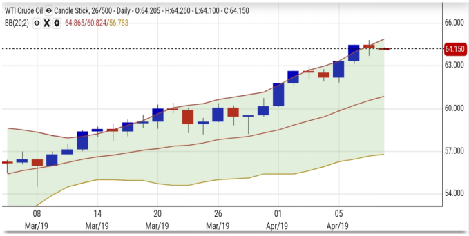 【原油】下行支持位64美元, 上方阻力位65美元