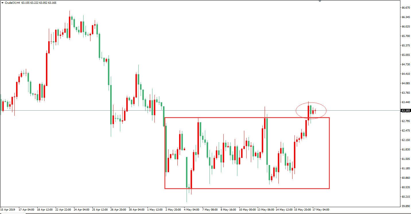 【原油】近期中东地缘风险加剧,推动油价走强,日线上周四上破近期调整区间,四小时线看行情上破近期调整区间,行情回落62.7一线可以介入多单,止损62.2,目标看64。