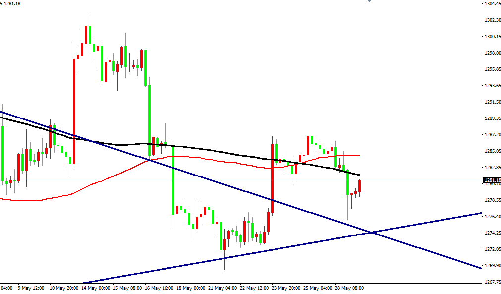 【黄金】:从技术面来看,短期内黄金没有下破1265,首先从空间上,黄金自5月13日首次破位后,5月23日再次往上破位,从真假突破的标准来看,第一突破在外,第二收盘在外,第三回吐在外,从这三个标准来看5月23日黄金往上破位才是真突破,从时间上来看,4小时级别来看黄金从1287这轮回吐调整基本已经见底,所以理论上来讲,4小时级别符合时空共振的标准,日内建议投资者以逢低做多为主,下方注意1276的支撑,上方注意1291的压力位。