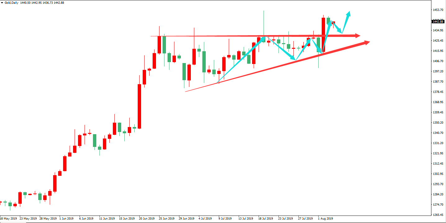 美国总统特朗普在七月底的中美磋商之后表示将对价值3000亿美元的中国进口商品增加10%税收,贸易磋商成果随着东流,金价获得支撑,冲击一周高位。