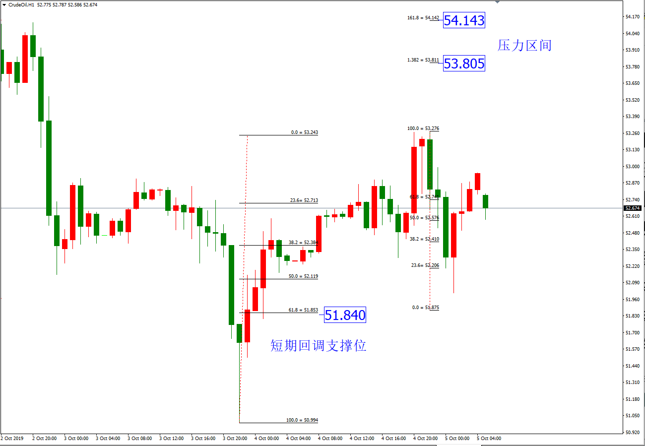 原油技术面上:上周四,油价触及51美元/桶之后快速上行,而小时级别的油价也因此收出长下影小阴线实体,标志着短周期下跌波段的止跌乃至企稳迹象,短期趋势上可考虑油价反弹修复至54以及56一线附近。另外,因上周五油价止步于53.3美元/桶附近,带来短期内原油的反弹出现诱多,即日内需先关注原油对下方52--51.8附近的回踩测试,而日内交易者亦可考虑在该区间附近进场原油多单,短期趋势目标可参考上方54美元/桶--56美元/桶,日内短线则参考上方53.8美元/桶--54.1美元/桶区间附近。