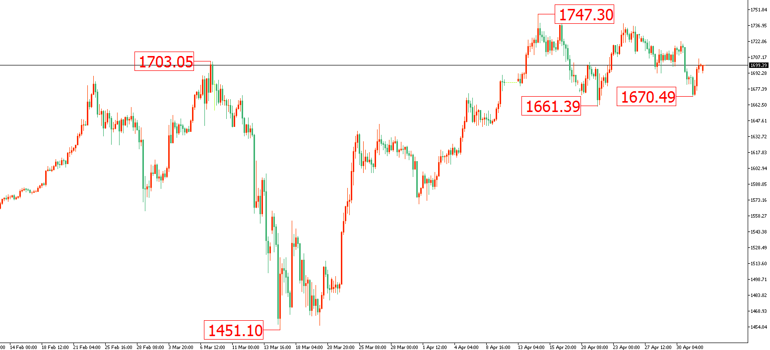 另外,上周五(4月2日)贸易摩擦风云再起,美股大跌,黄金避险需求上升,自1680美元一线大涨重回1700美元附近。
