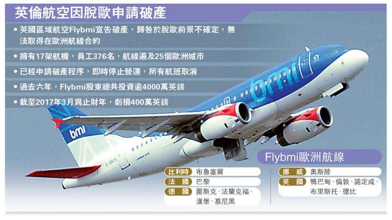 2月18日,英国小型航空公司英伦航空进入破产程序。该公司负责人表示,“脱欧”的巨大不确定性及航空公司成本的上涨是致其破产的主要因素。