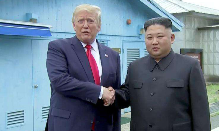 当地时间30日16时左右,特朗普从板门店韩方一侧步行至军事分界线前,与迎面走来的金正恩握手寒暄。随后,特朗普跨过分界线,在朝方一侧与金正恩再次握手。而后,两人一起走到韩方境内,与等候在那里的韩国总统文在寅会面。