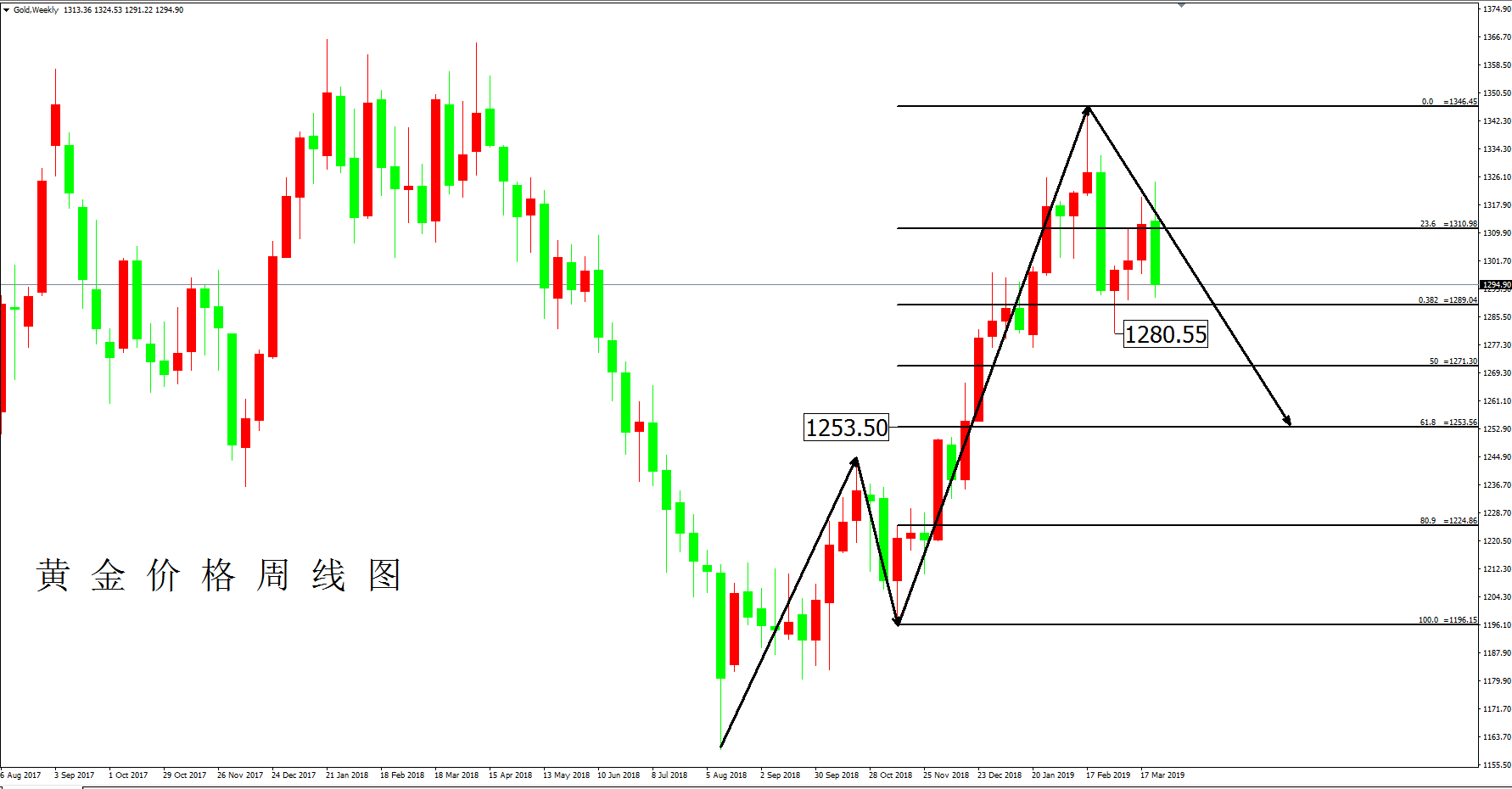 图示:黄金价格周线图