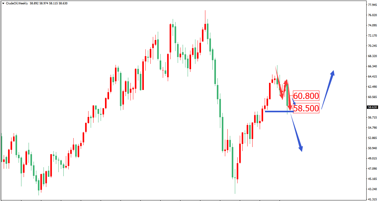 从技术面看,油价在至66美元下行以来,在上周已经完成日线级别AB=CD的下行结构,当前在配合周线级别20均线的支撑之下,本周我们将重点关注58.5附近的跌破。在此之前建议仍以低多思路进行看待,上方关注60.8之下的压制情况,但若价格再次破位上周低点,行情将很有可能改变此前的多头结构,进而打开更大的下行空间(55美元和51美元)。总之,关于油多是否长久,本周的朝暮之间都将可能牵动市场的神经。