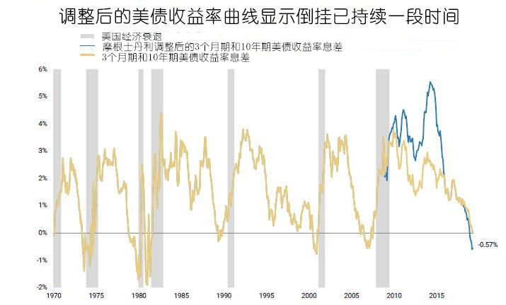 图示:美国10年期国债与3月期国债倒挂,数据来自摩根士丹利